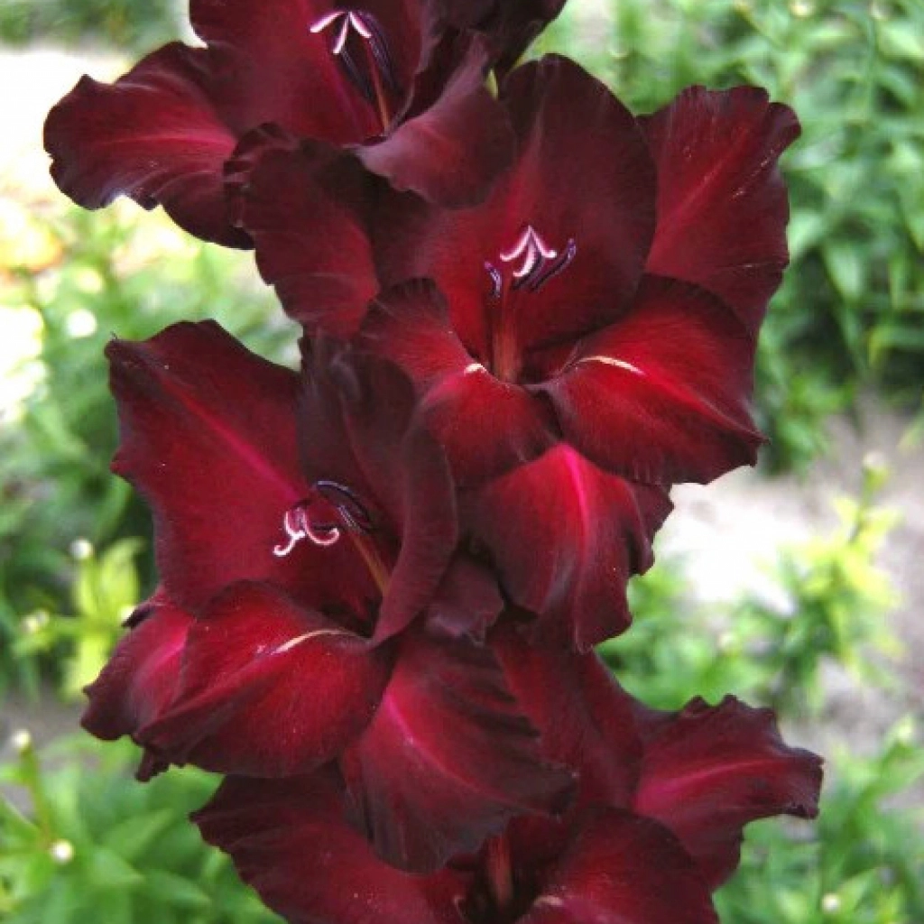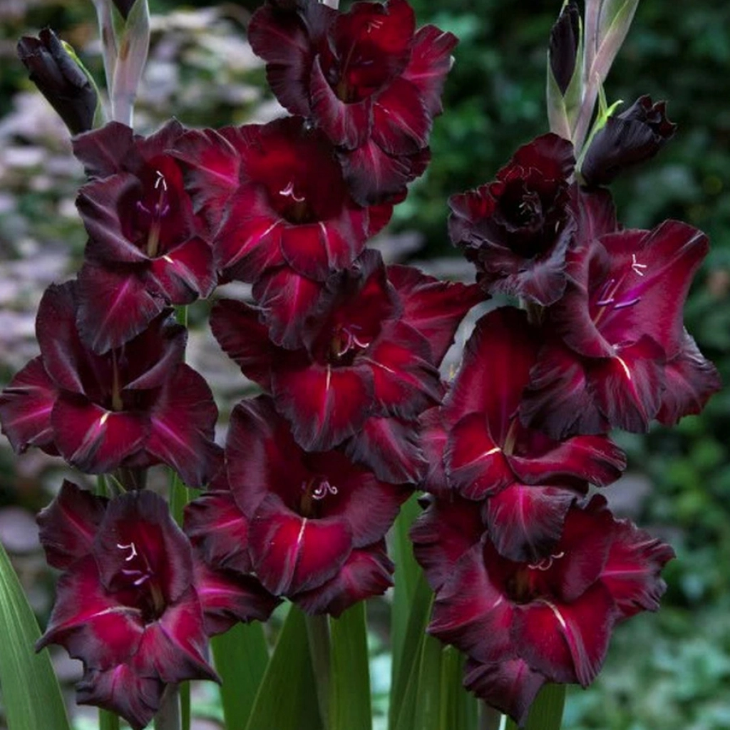 Magnetizantă, această gladiolă ne surprinde prin culoarea profundă a florilor sale. Petale catifelate, de un bordo închis, cu margini aproape negre vă vor capta privirea. Înflorește îndelungat, începând din luna iulie, până în septembrie. Pachetul conţine 7 bulbi.