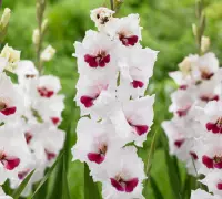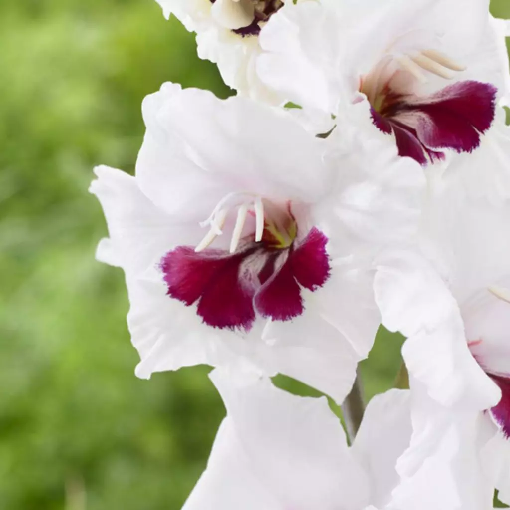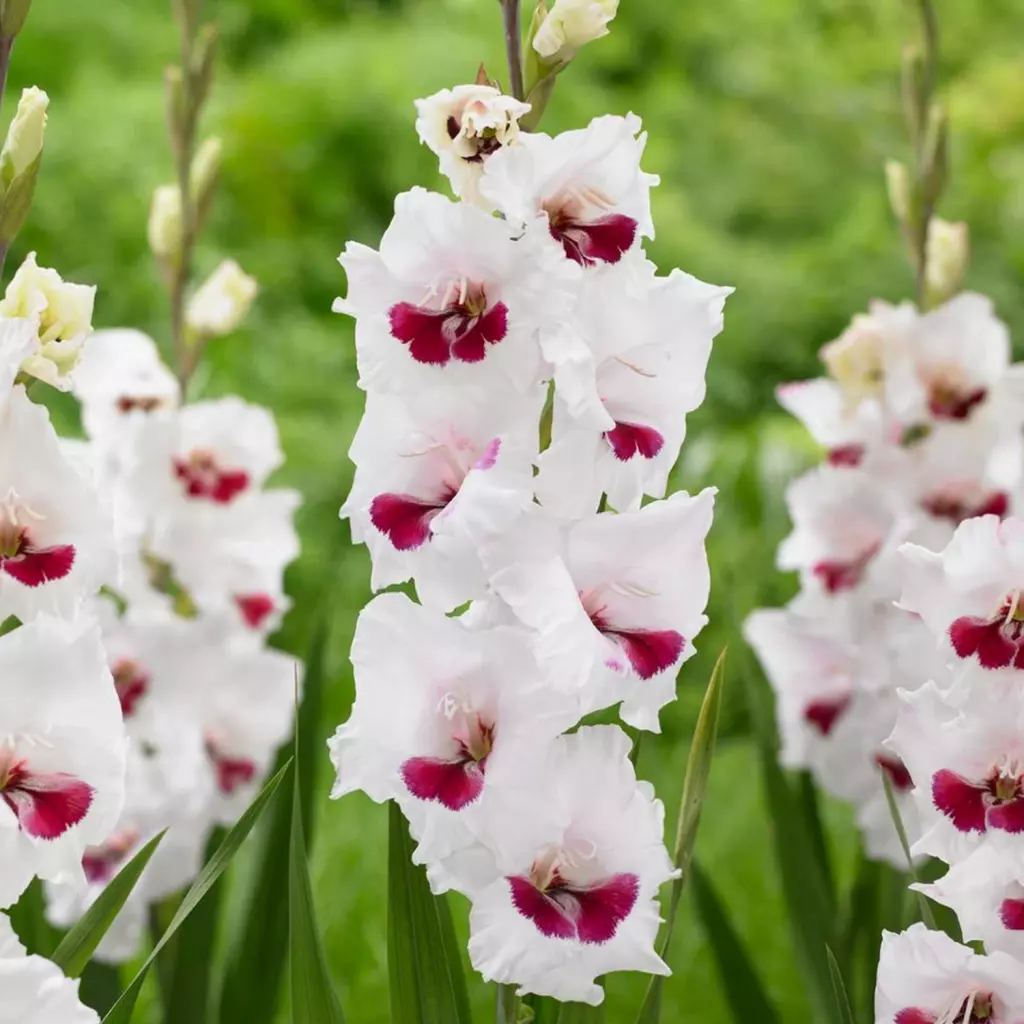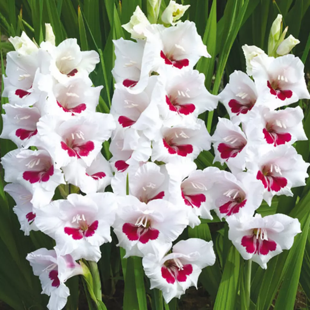 Florile gladiolei Fiorentina sunt asemănătoare cu ale orhideelor. Zeci de petale albe și drăgălaşe sunt puse în valoare de un puternic accent roşu-vişiniu, în centru. Vor atrage instataneu privirea oricui va trece pe lângă ele. Pachetul conţine 10 bulbi.