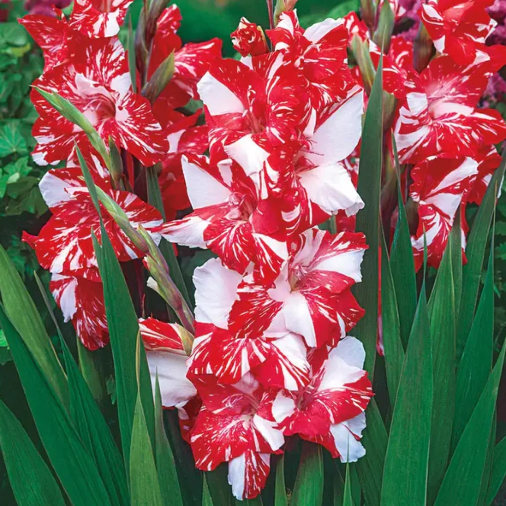 Gladiolele Koi Pursuit sunt o apariție spectaculoasă, ce impresionează prin modelul lor cromatic unic. Florile catifelate, în nuanțe de roșu intens, par a fi stropite artistic cu un alb imaculat, de parcă ar fi pictate manual. Tijele înalte și viguroase poartă cu mândrie aceste inflorescențe deosebite, care își păstrează prospețimea și culorile vibrante timp îndelungat, chiar și după ce sunt tăiate. Se plantează în locuri însorite. Pachetul conține 8 bulbi.