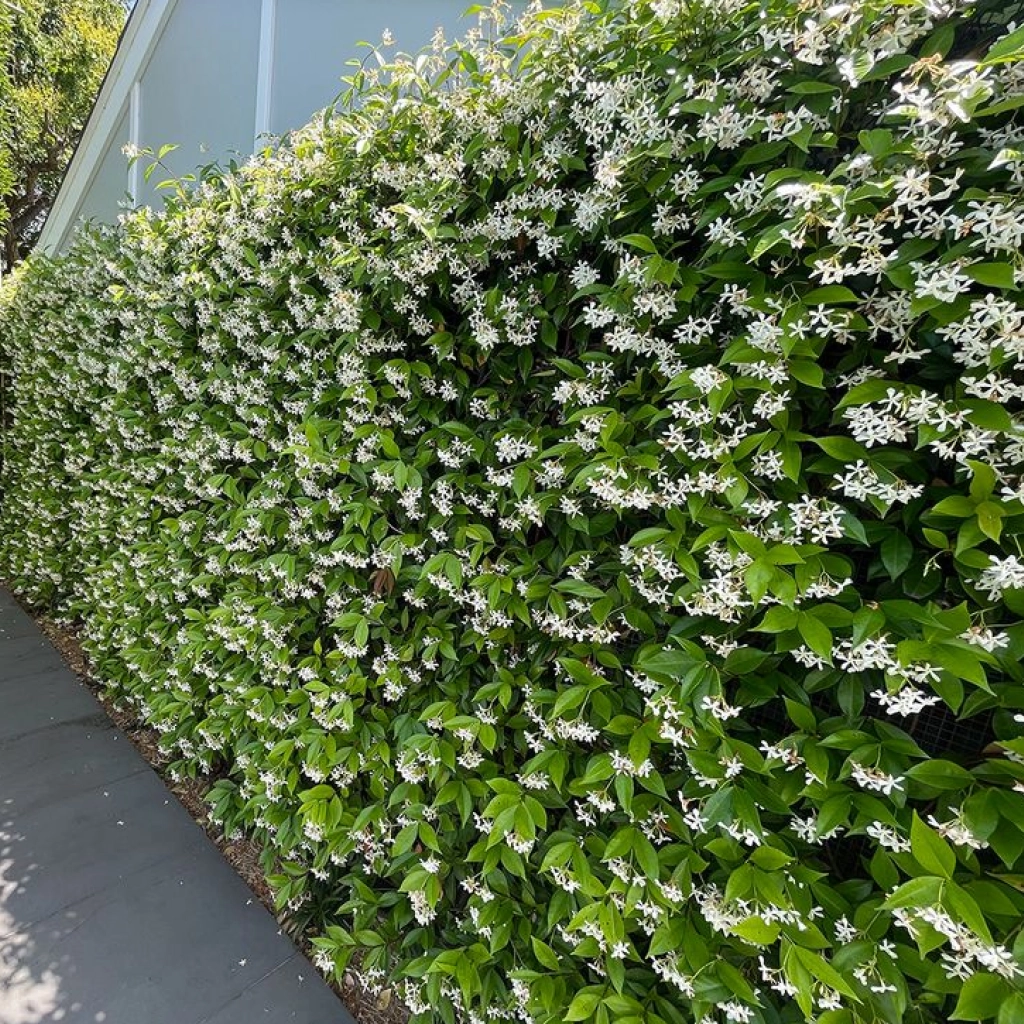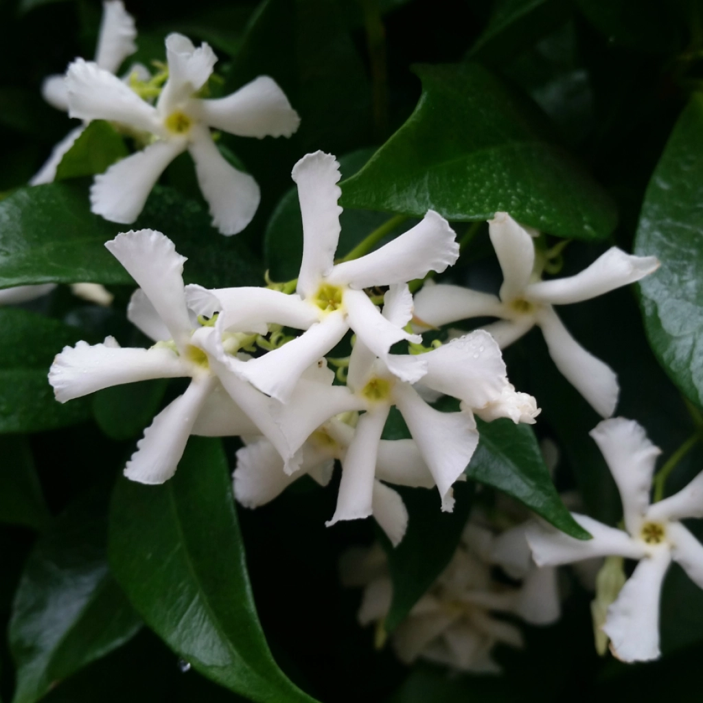 Acest soi de iasomie cățărătoare este o prezență deosebită în orice grădină. Foliajul lucios, de un verde închis oferă fundalul perfect florilor stelate, albe la culoare, irezisitibil și dulceag mirositoare. Planta este veșnic verde, și are un aspect elegant. Preferă locurile însorite sau parțial umbrite și solurile bine drenate, iar dacă temperatura scade sub -10 grade Celsius se recomandă protejarea plantei.