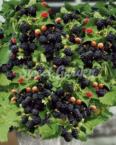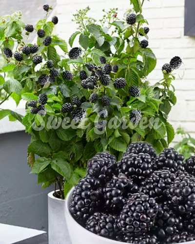 Un mur care datorită înălțimii sale mici, poate fi plantat în ghiveci și amplasat pe terasă sau balcon. Fructele negre, cu aspect lucios pe care le produce sunt medii ca mărime și au gust dulce, revigorant. Murul poate crește până la 1m, la maturitatea deplină, dar dacă se tunde la începutul primăverii, îl puteți menține la o dimensiune optimă și constantă, adaptată spațiului în care este situat. Începând de la mijlocul lunii august, până în luna octombrie veți putea recolta savuroasele fructe. De la un an la altul, producția va crește. Livrăm plante la ghiveci.