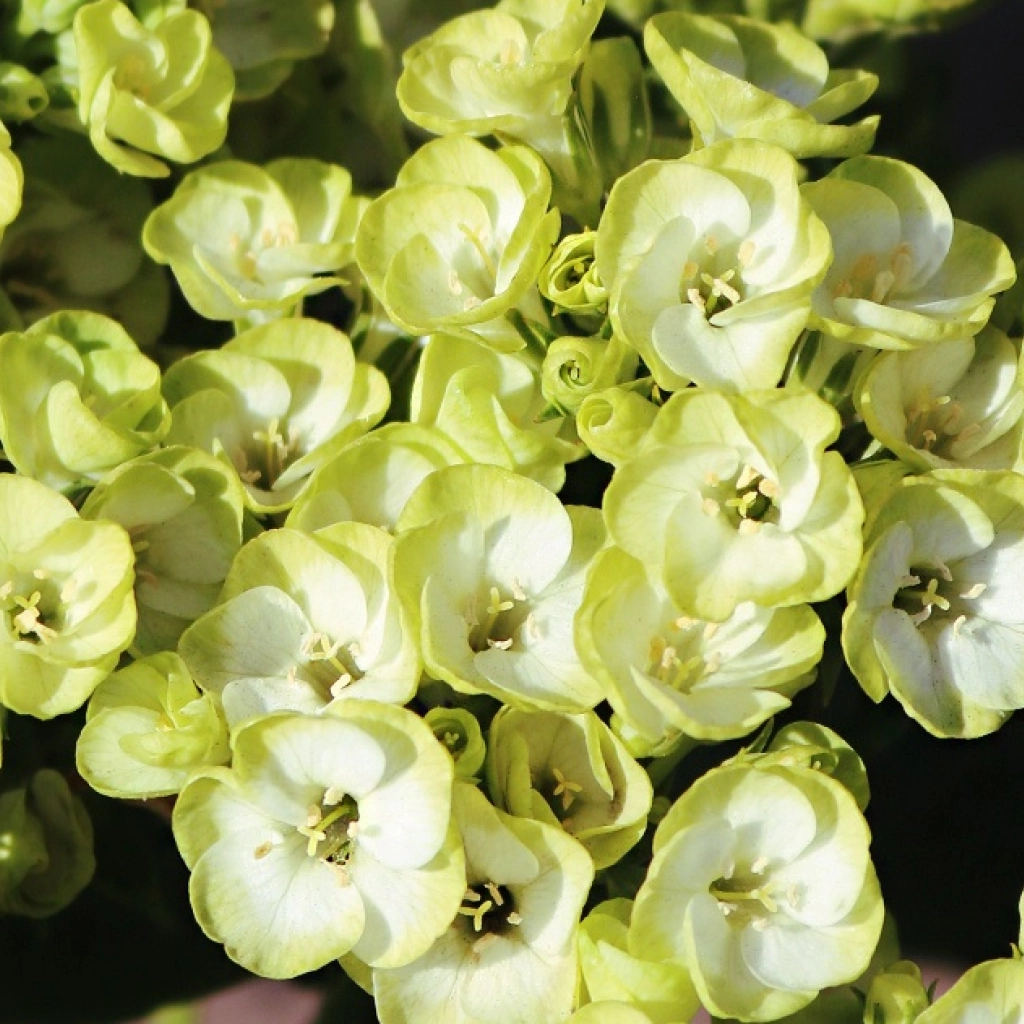 O plantă perenă deosebit de atractivă, ce se remarcă prin florile sale inedite, etalând petale albe cu un contur gros de un verde deschis. Florile sunt grupate dens în inflorescențe mari, ceea ce le conferă un aspect decorativ și sofisticat. Frunzișul constă din frunze înguste, lanceolate, de un verde intens. Înflorește din iulie până în septembrie, aducând o notă vibrantă în grădină. Florile au un parfum plăcut, care atrage polenizatori precum albinele și fluturii. Se plantează în locuri însorite sau semiumbrite. Pachetul conține 1 rizom.