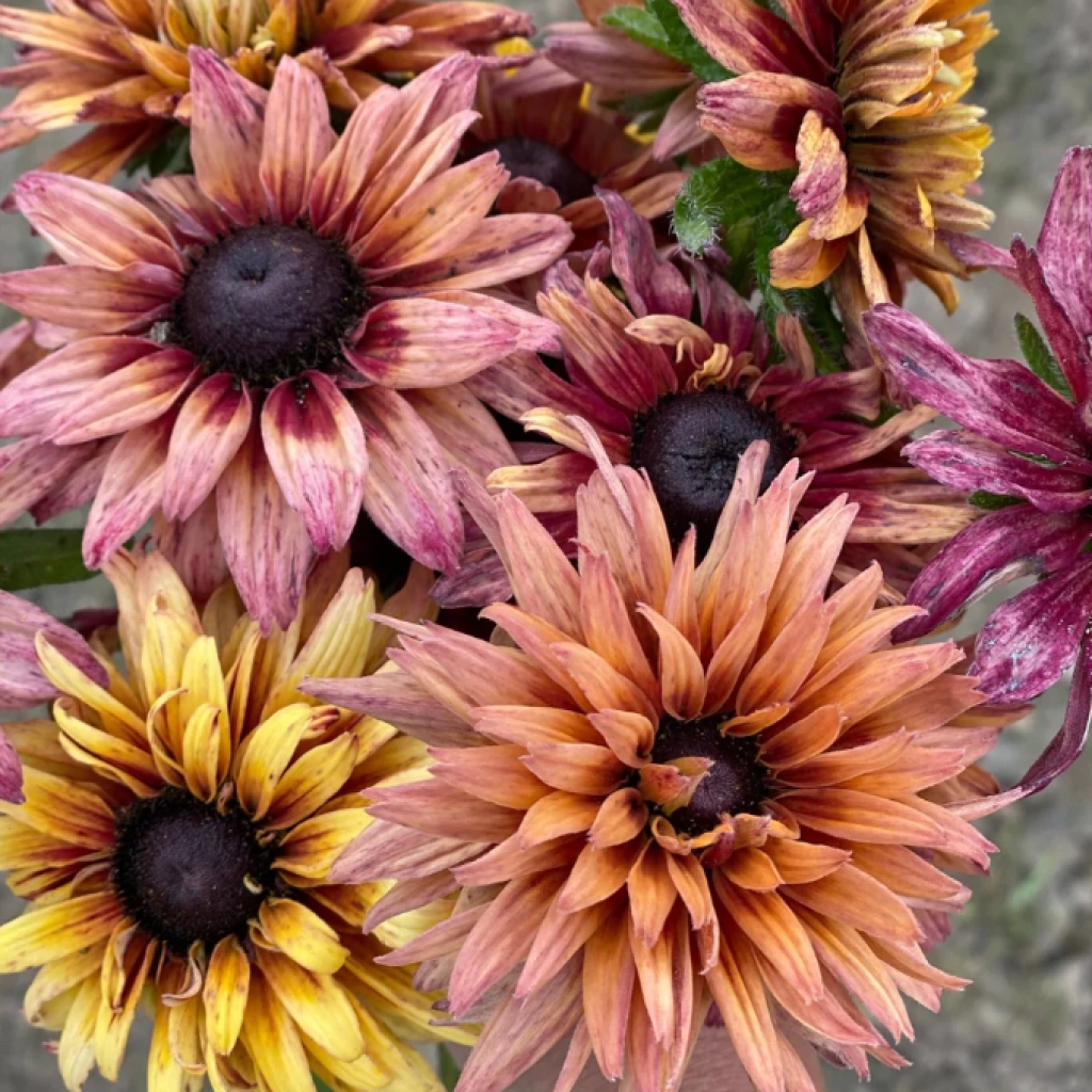 Acest soi reinventează clasica Rudbeckia cu o paletă de culori calde și subtile, diferite de galbenul intens tipic speciei. Paleta de culori a acestui soi conține nuanțe roșiatice, de maroniu, arămiu și chiar tonuri de roz. Florile sunt semi-duble sau duble, și au o textură catifelată. Perioada de înflorire durează din mijlocul verii și până în toamnă, continuând până spre primele geruri dacă condițiile sunt favorabile. Rudbeckia se plantează în locuri însorite, în sol bine drenat.