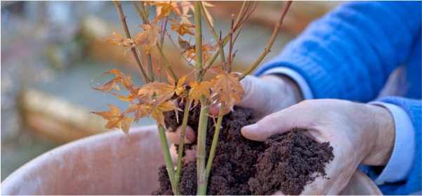 2. Sapă o groapă de două ori mai mare decât ghiveciul arțarului japonez.