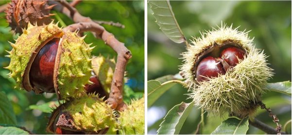Deși numele lor poate duce la confuzii, castanul sălbatic și cel comestibil nu au nimic în comun în afară de aspectul fructelor. Primul ne încântă prin flori și frunziș, al doilea prin gustul dulce și aroma caldă a castanelor.