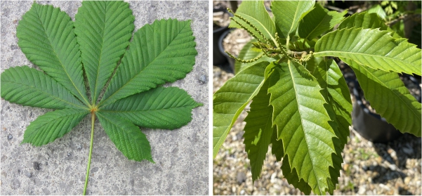 • La castanul sălbatic, frunza este mare, compusă din 5–7 foliole alungite, care pornesc dintr-un punct comun, asemenea degetelor unei mâini.