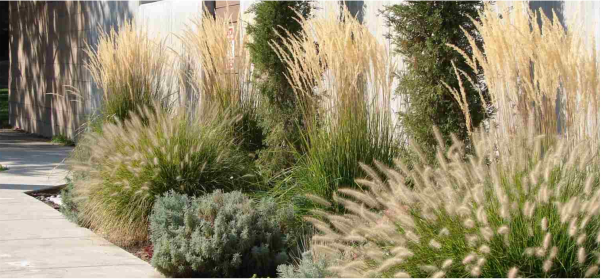 Pe lângă plantele perene și ierburile ornamentale, există și arbuști de talie mai mare care iubesc soarele și devin rezistenți la secetă odată ce ajung la maturitate, cum sunt iarba de pampas, măslinul de toamnă, Pyracantha, liliacul de vară sau Physocarpus. Totuși, din cauza dimensiunilor lor generoase, aceste plante nu sunt potrivite pentru compoziții mixte. În schimb, variantele pitice de iarba de pampas și liliac de vară, dar și soiurile compacte de Physocarpus, pot fi integrate cu succes în combinații decorative. Măslinul de toamnă și Pyracantha sunt excelente pentru formarea de garduri vii rezistente și aspectuoase.