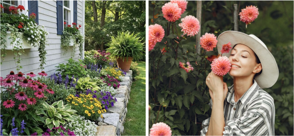 Într-o grădină în stil romantic plantele cresc cu generozitate, dar nu la întâmplare. Esența stilului romantic constă în felul în care plantele se așază unele lângă altele, culorile care se topesc una în cealaltă, alei care te invită să încetinești, și colțuri în care ai vrea să tot rămâi. Culorile sunt alese cu grijă: alb, roz-pal, mov deschis, accente argintii și, desigur, mult verde.