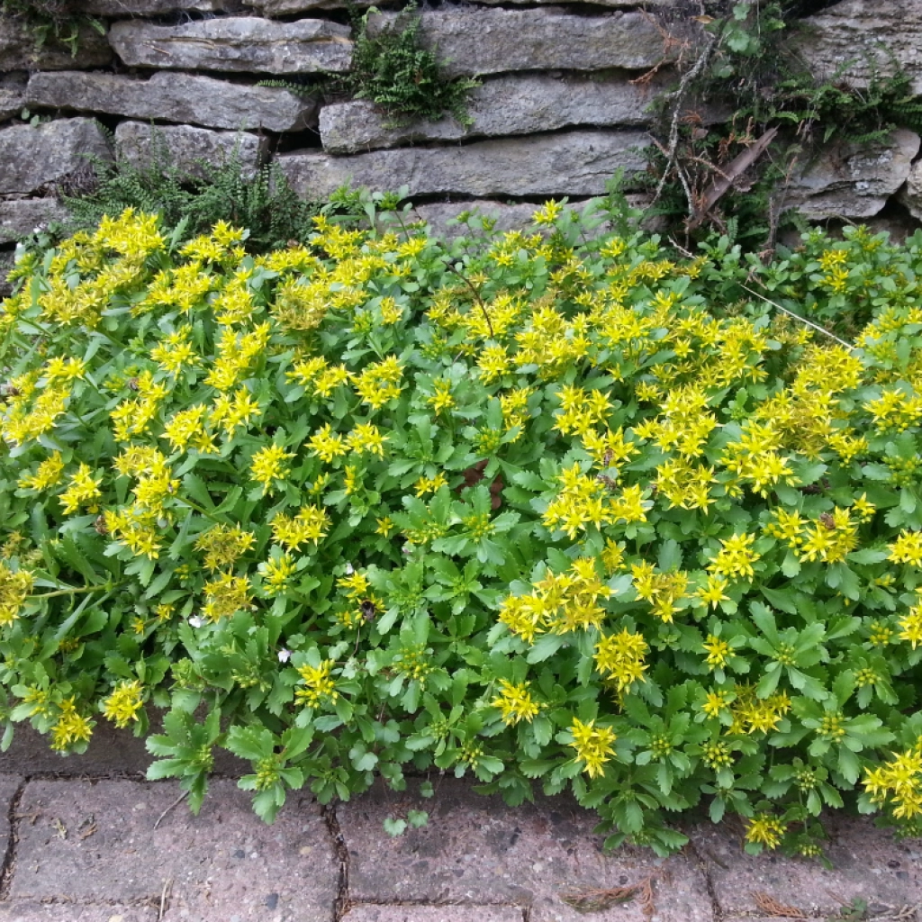 Puține plante acoperitoare de sol reușesc să fie la fel de decorative precum acest sedum. Frunzișul suculent verde-cenușiu formează un covor dens și uniform, de numai 8–10 cm înălțime. În lunile iunie și iulie, flori galben-aurii acoperă generos covorul de frunze, atrăgând albinele și fluturii. După flori rămân capsule ale semințelor, de culoare portocalie, care adaugă și ele un element decorativ subtil, dar interesant. Toamna, frunzișul îmbracă nuanțe roșiatice. Planta este rezistentă la ger și la secetă. Se poate cultive și în soluri sărace, fiind una dintre cele mai puțin pretențioase plante pentru grădini însorite. Se potrivește perfect în rocării, de-a lungul plăcilor de pavaj sau în ghivece pe terasă.