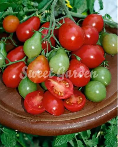 produce sunt mici, de culoare roșie și formă atractivă, de pară. Pe un