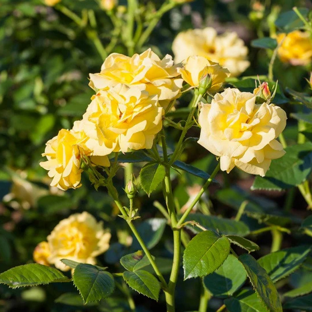 Nenumărate petale galbene și strălucitoare formează floarea atât de atractivă a acestui trandafir. Intensitatea culorii se menține pe toată durata înfloririi. Luni în șir, vă veți putea bucura de frumusețea acestora, căci înflorirea durează de la sfârșitul primăverii până la primele geruri din toamnă. Fiind crescut pe tulpină înaltă, trandafirul capătă un aspect stilat, putând fi integrat cu ușurință și în grădinile mai mici. Pentru o creștere armonioasă, se amplasează în locuri luminoase, însorite. Livrăm plante de 2 ani, dezvoltate la ghiveci.