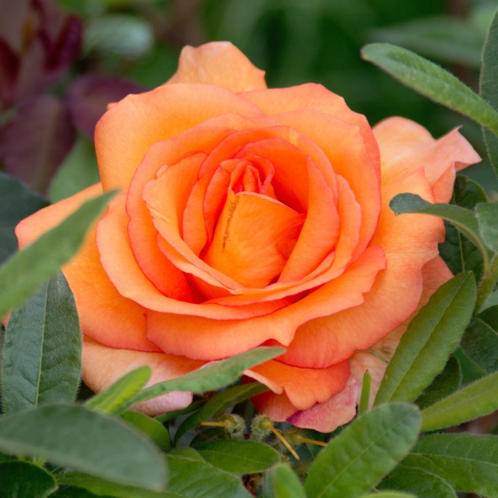 Portocală, caisă? Nici una, nici alta, ci un trandafir de un portocaliu intens, asemeni unor fructe coapte de vară, cu ușoare reflexii de roz și galben. Florile sunt alcătuite din câteva zeci de petale (aproximativ 10 cm). Frunzișul este dens, foarte decorativ, de un verde strălucitor. Viguros, cu o excelentă rezistență la boli încântă privirea oricui. Înflorește începând cu sfârșitul primăverii până apare înghețul. La maturitate atinge o înălțime de aproximativ 80 cm. Ca amplasament, preferă locurile însorite.
