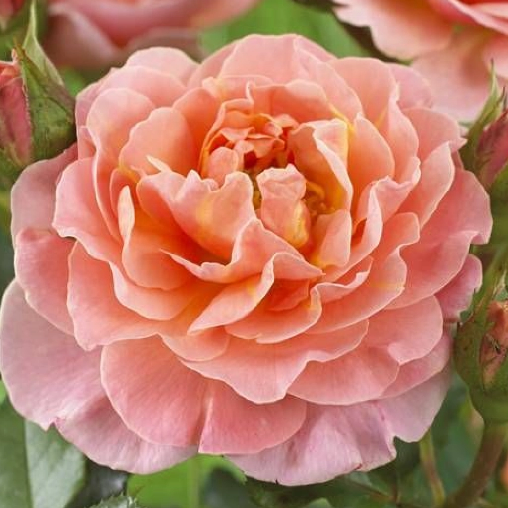 Petale ușor ondulate, în nuanțe fine de roz, portocaliu și un strop de arămiu formează florile acestui trandafir de colecție. Marie Curie este o creație Meilland, deci o garanție a calității ireproșabile. Florile mari, stau așezate în buchete elegante și au un parfum aparte, de cuișoare. Pe tot parcursul verii, până la primele geruri, acest trandafir va înflori încontinuu. Pentru o dezvoltare armonioasă trebuie să i se asigure un amplasament însorit.